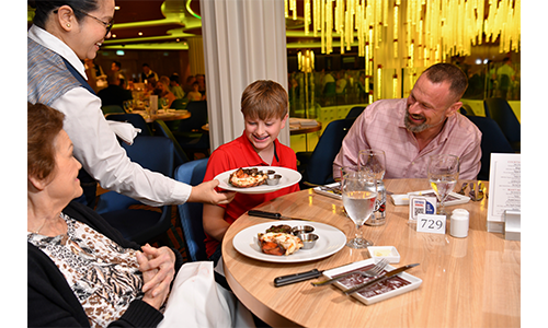 In this zone, guests will find Festival Grounds Coffee & Bar, which anchors the space with specialty coffee creations and festival-inspired cocktails. Dynamic lighting and music shift the venue from an energetic daytime vibe to a mellow nighttime ambiance. Pizza Palooza delivers fresh pizzas, which Carnival guests know and love fleetwide as a quick bite that’s perfect for sharing among friends. Rhythm & Rolls Deli rounds out the casual dining options with gourmet sandwiches. The pizza and deli venue designs are inspired by festival food trucks and complement the energetic atmosphere with specialty cocktails that capture the spirit of summer music festivals.